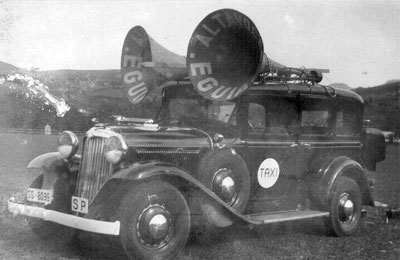 En algunas ocasiones alquilaban taxis y los equipaban con altavoces para sonorizar los eventos.